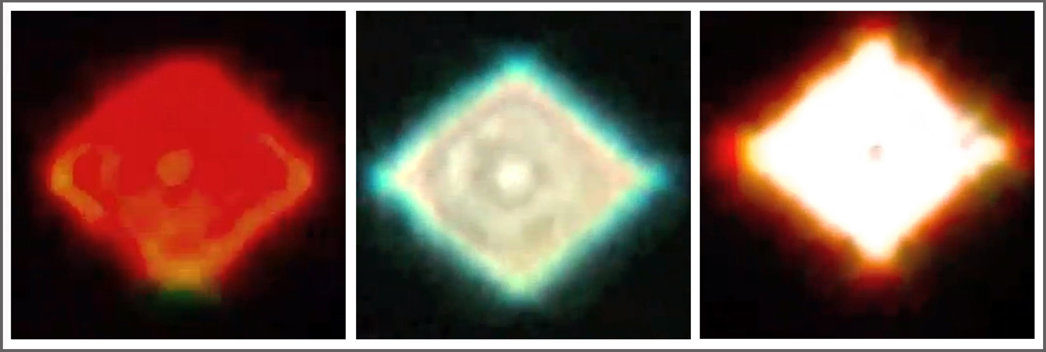 Αυτές οι τρεις εικόνες δείχνουν το 'άστρο' του Μαϊτρέγια όπως κινηματογραφήθηκε την αυγή στην κοιλάδα Πεσκάρα της Ιταλίας την 25η Φεβρουαρίου του 2011. Το 'άστρο' φαίνεται στο μαγνητοσκοπημένο απόσπασμα να μεταβάλλει γρήγορα το χρώμα και το μέγεθός του. (Πηγή: YouTube: IntelligenceAstro)