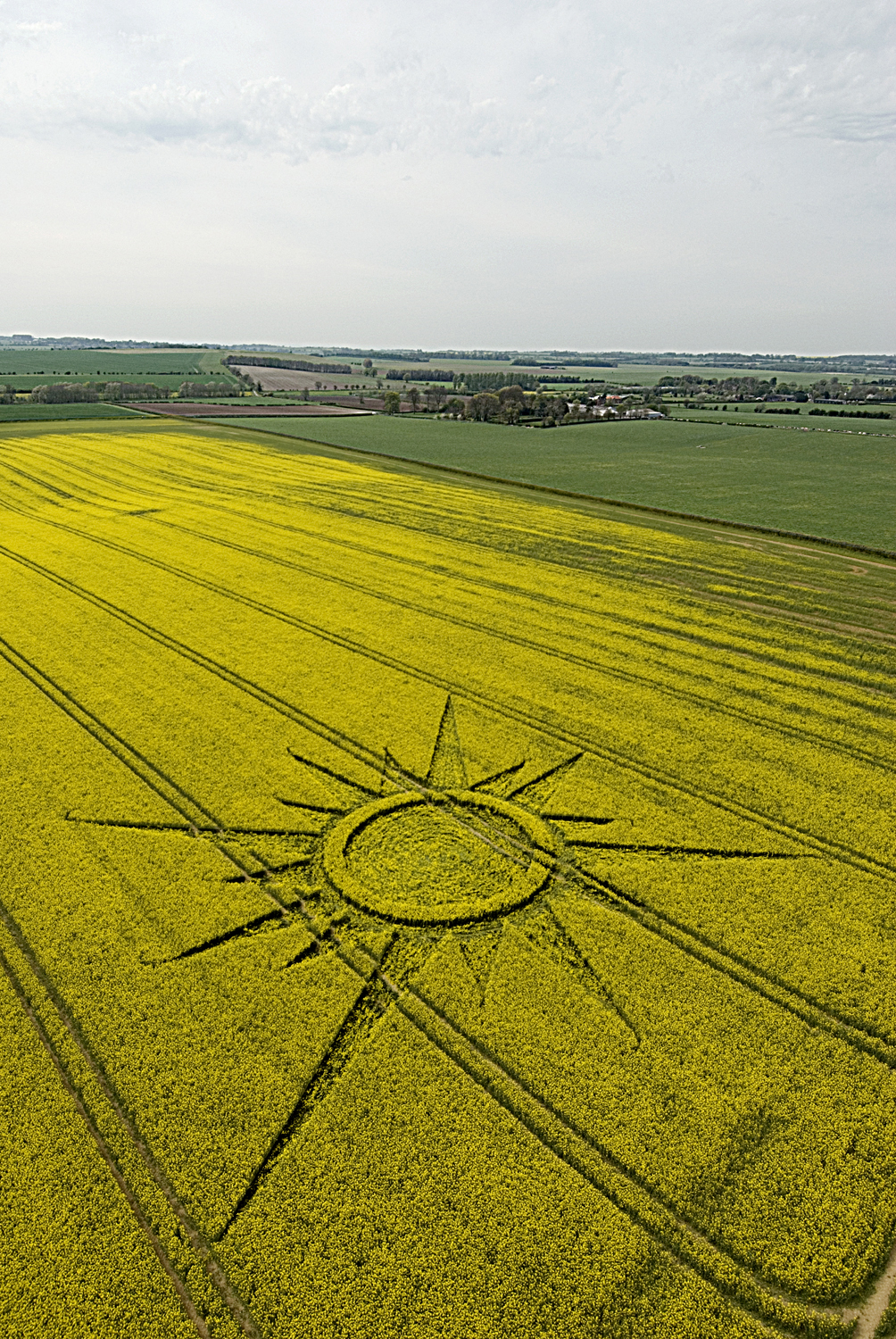 Στις 23 Απριλίου 2009 ένας μεγάλος σχηματισμός κύκλων στα σπαρτά (αγρογλυφικών – Crop Circles) εμφανίστηκε σε χωράφι στο αγρόκτημα Rutlands κοντά στο Avebury, στο Wiltshire, στην Αγγλία. Το όμορφο, συμμετρικό σχήμα μοιάζει με αστέρι – αποτελείται από έναν κεντρικό κύκλο που περιβάλλεται από 16 διαφορετικού μήκους ακτίνες – και εμφανίστηκε σε ένα χωράφι με φυτά canola (ελαιοκράμβη) τα οποία ήταν ανθισμένα με κίτρινα λουλούδια. Ο σχηματισμός είχε μήκος περίπου 100 μέτρα κατά το μέγιστο και είχε διάμετρο 22 μέτρα στο κεντρικό κύκλο.