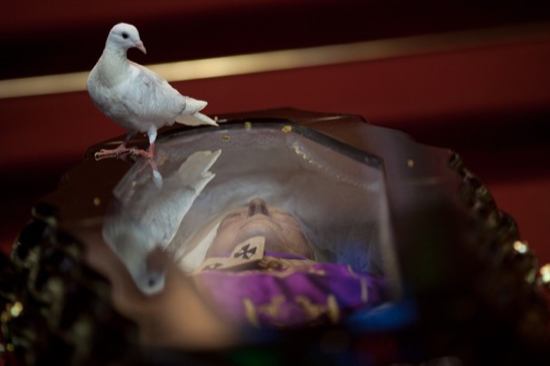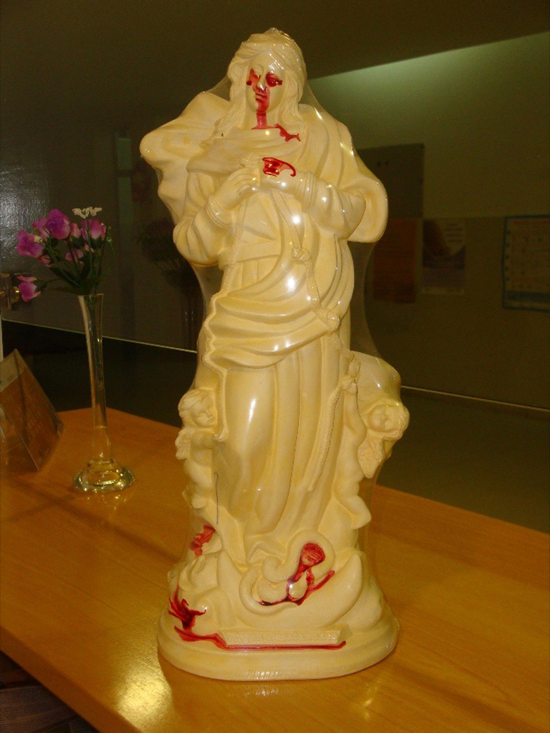αγάλματος της Παναγίας. Το αίμα εμφανίστηκε κάτω από το προστατευτικό
