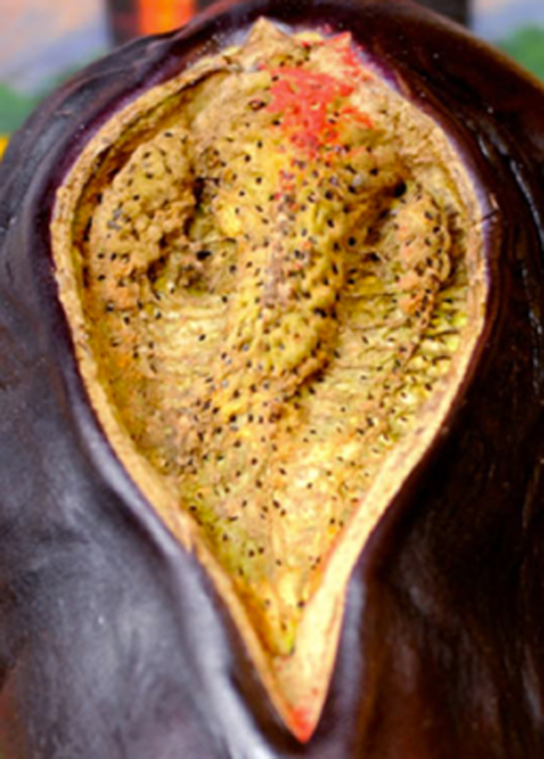 σε μια μελιτζάνα ένα σημάδι που έμοιαζε με την Ινδουιστική Θεότητα με μορφή