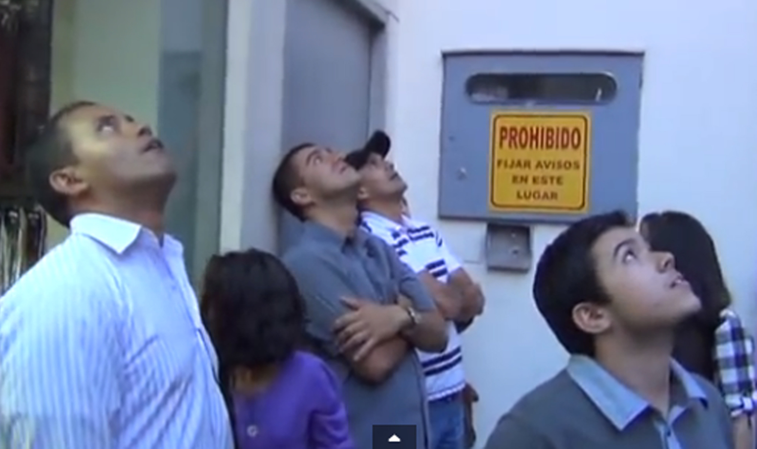να κοιτούν ψηλά έκπληκτοι σε πολυσύχναστο δρόμο. ( Πηγή: nationalufocenter.com)