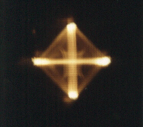 - Στο σπίτι του Λέο και της Λορέτα Aλφόνσο στην πόλη Bάιολετ της Λουιζιάνας, εμφανίζεται τώρα ένα ακτινοβόλο πανόραμα από σταυρούς — περίπλοκες μορφές ύψους τριάντα εκατοστών, που γίνονται πιο αχνές στις άκρες και φαίνονται σα να βρίσκονται σε απόσταση. Tρεις από τους σταυρούς χύνουν λευκό φως και ένας χρυσό. Mερικοί βλέπουν κι έναν κόκκινο σταυρό να περνάει αιωρούμενος μπροστά από τους άλλους. (1990, The Dallas Morning News).